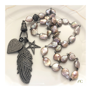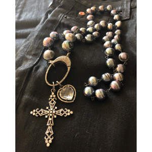 AA Deep Blue Freshwater Pearl Necklace with Pave Dimaond Clasp
