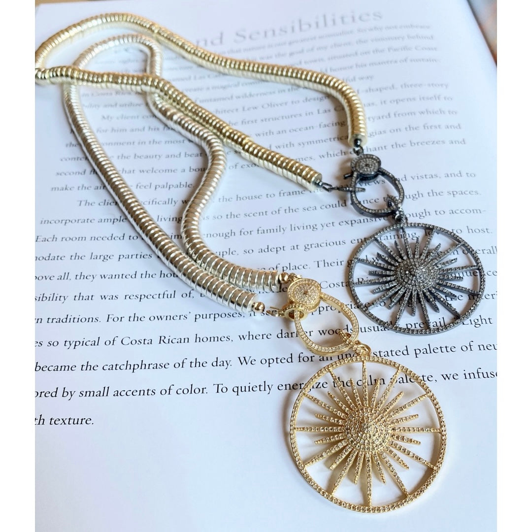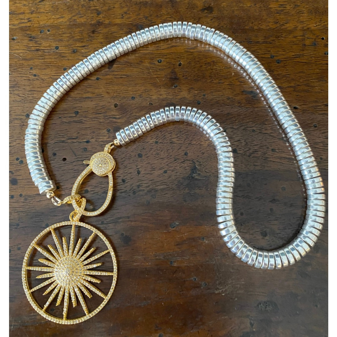 Silver hematite beads with gold vermeil diamond clasp. Pictured on left in image. Pendants sold separately!